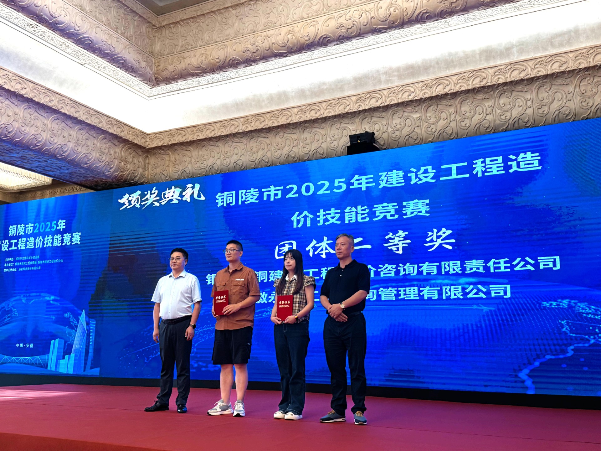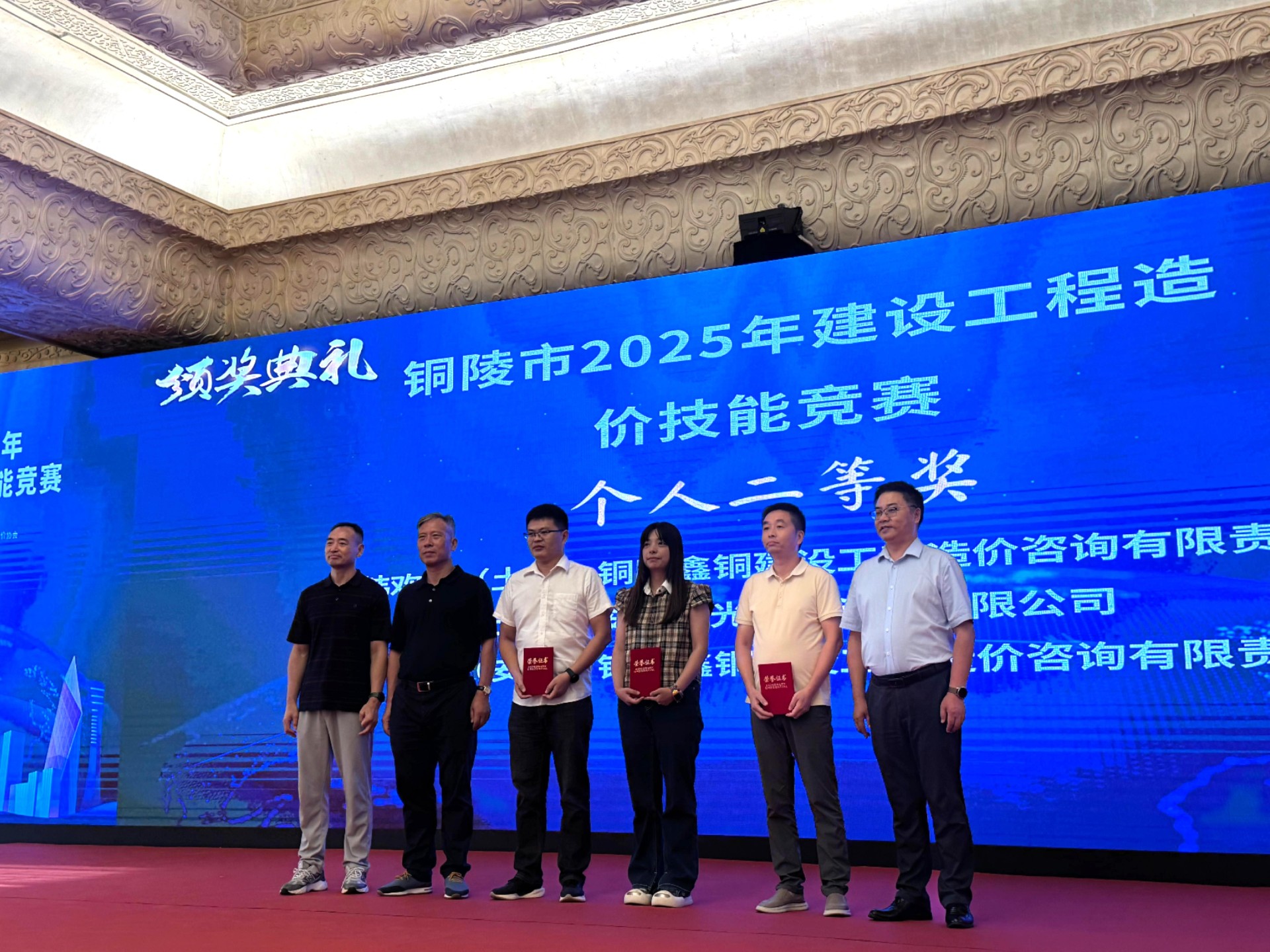 9月1日,銅陵市2025年建設(shè)工程造價技能競賽在銅雀臺金陵大酒店舉行,造價公司以團體總分第二名,榮獲銅陵市2025年建設(shè)工程造價技能競賽二等獎。