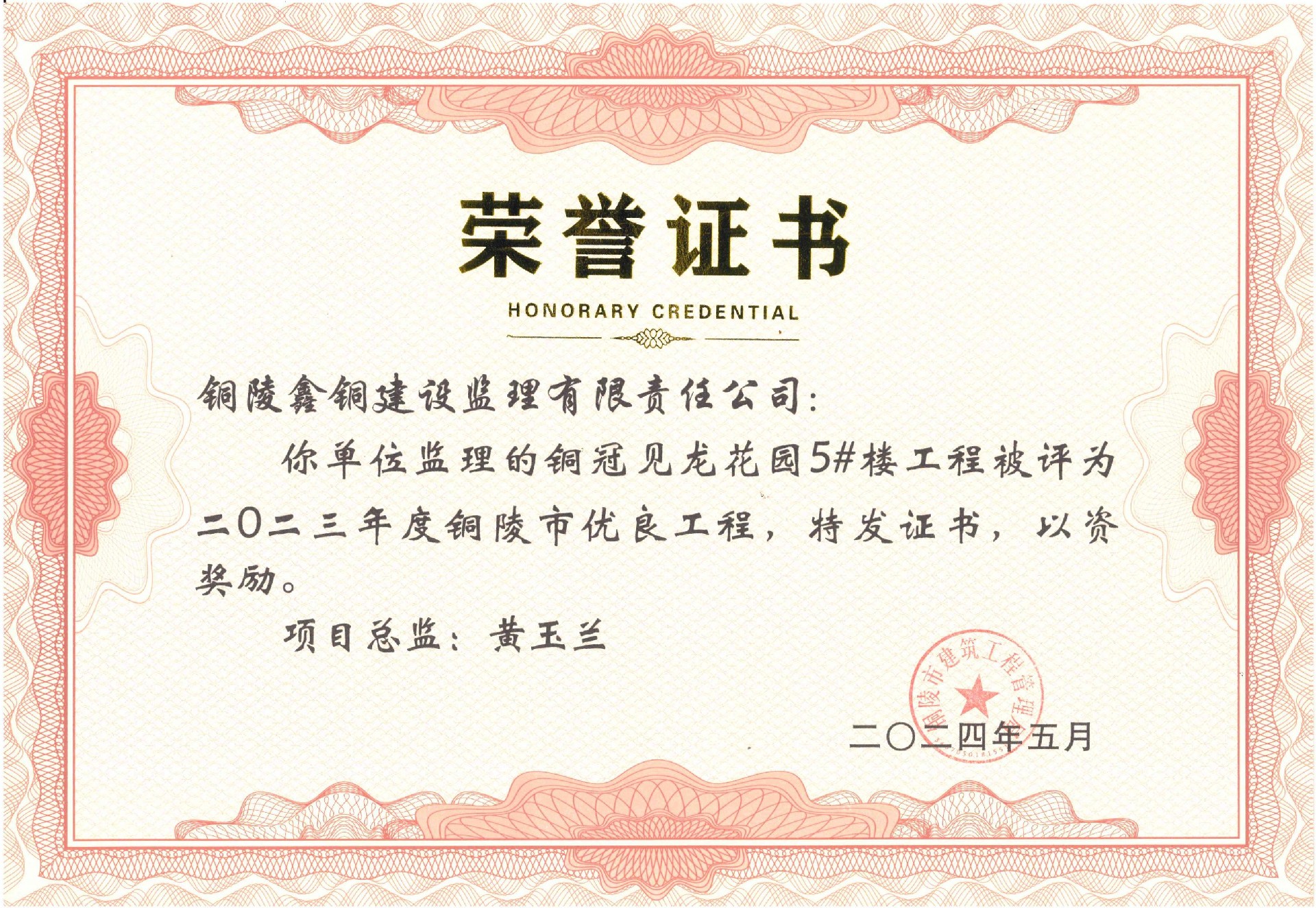 公司多個(gè)監(jiān)理項(xiàng)目被評為銅陵市優(yōu)良工程